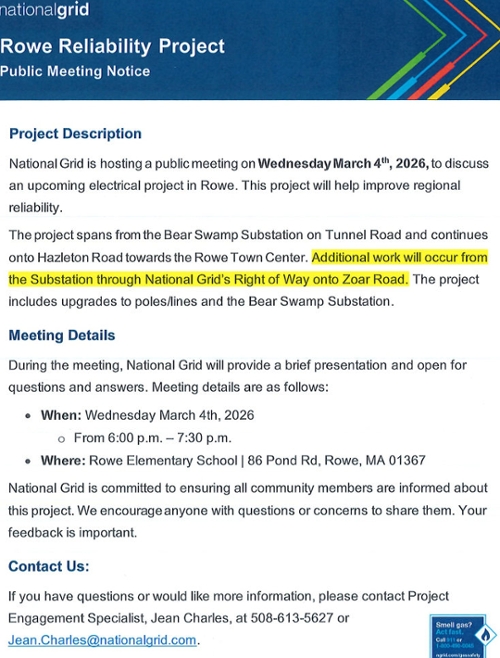 Rowe has a 3-member Board of Selectmen and Annual Open Town Meeting form of government. A newly completed broadband network built by the town.